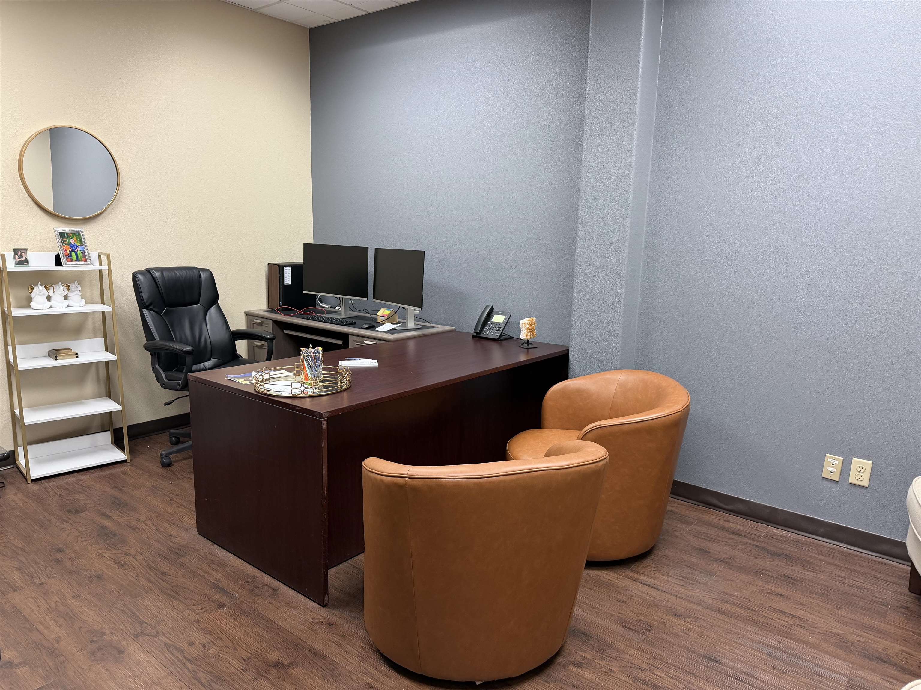 Fully Furnished Office Space available. Perfect for an Entrepreneur, Business Professional (Lawyer, Real Estate Agent, Logistics, Consultants etc.) in a great location off of IH35. These individual luxury offices are fully furnished with an Executive Desk, Executive Chair, Multi-Line Phone for business, and Business Professional Guest Chairs. High speed internet, Telephone line, and all utilities paid. Receptionist Service Monday – Friday 8am-5pm, Lounge, and Large meeting room available upon request.