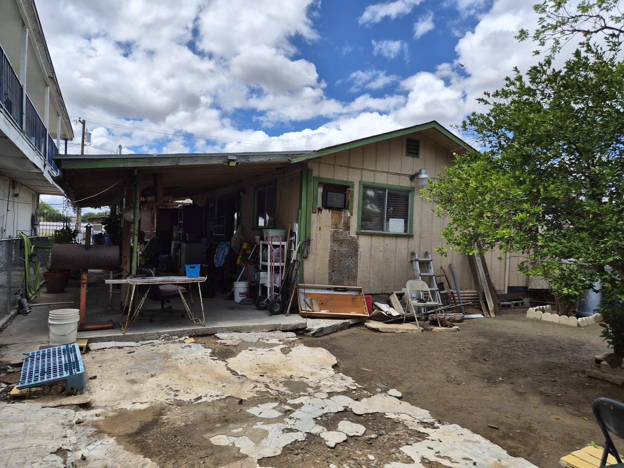 2 houses on one lot. Front home was divided into 2 living areas. One of them is leased out. Rear home is occupied by one of the owners. 2 electric meters one water meter.